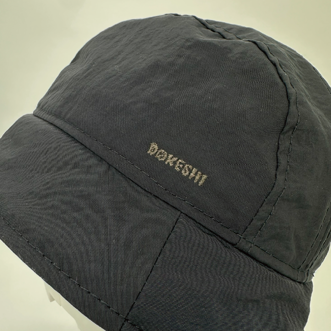 頭にフィットするクラウン(帽体)が特徴のバケットハットデザイン。(筒形が多いバケットハットに、5パネルを採用) ツバはクラウン(帽体)に沿う様、深すぎず浅すぎない長さにこだわり。 どんな服装にも合わせやすい気軽に被れるバケットハット。