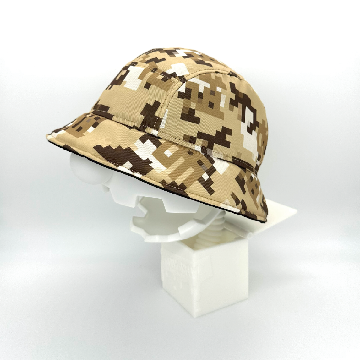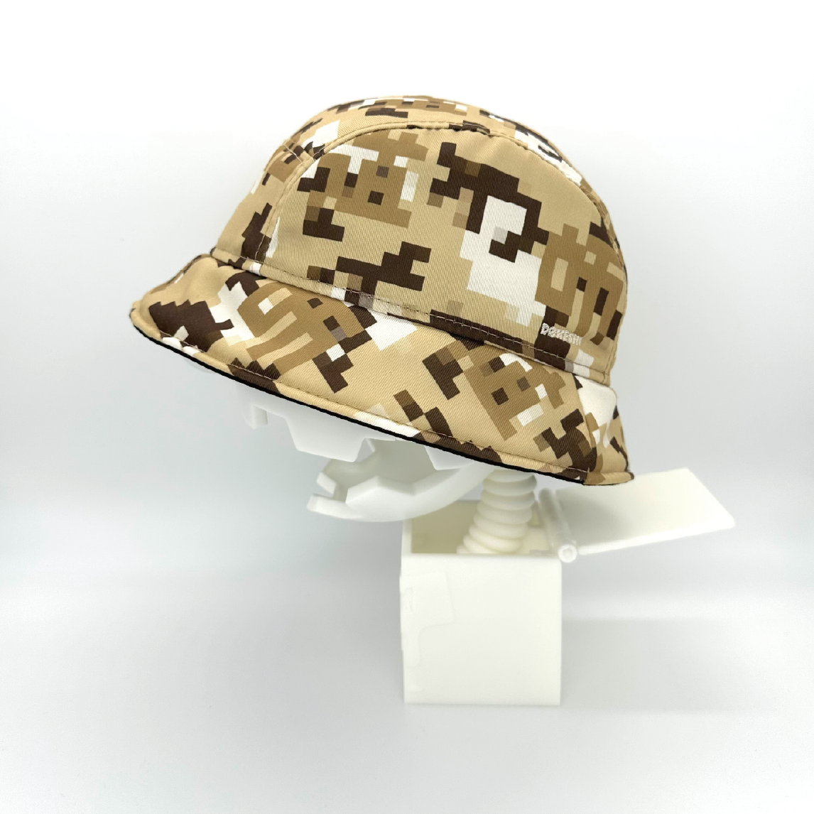 デジタルモザイクにロゴが隠されつつ主張しすぎない色バランスのデザートカモフラージュ。