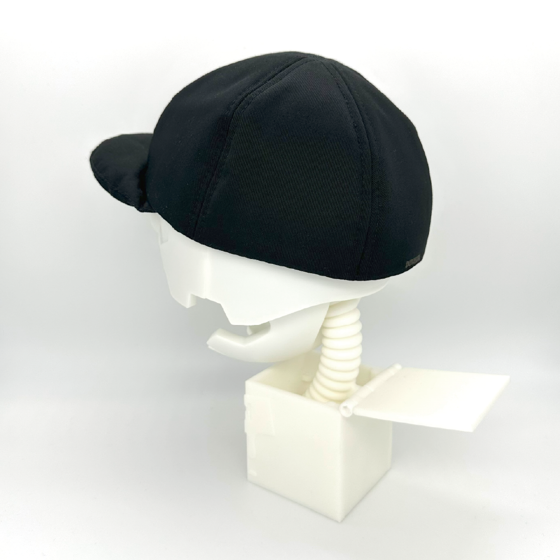 見た目を柔らかく表現し、スポーティ過ぎないツバ付きキャップ仕様に。